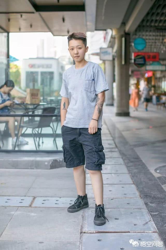图6:灰色T工装短裤黑色板鞋。一个偏向中性打扮的小姐姐,非常的cool~