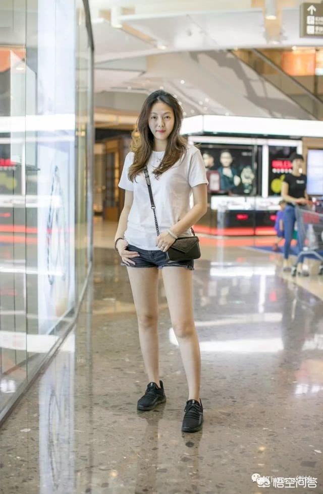 图3:白T黑色短牛仔裤黑色运动鞋。简单的黑白配色,给人一种利落又不失时尚的赶脚~